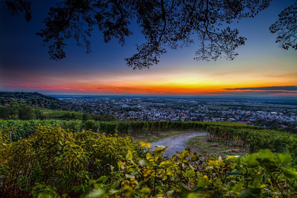 About the photo, where I shot two years ago. I was walking around to search good places for the portrait shooting of the bridal couple, when I found this sightseeing over Bensheim while the sun was just hide behind the horizon.